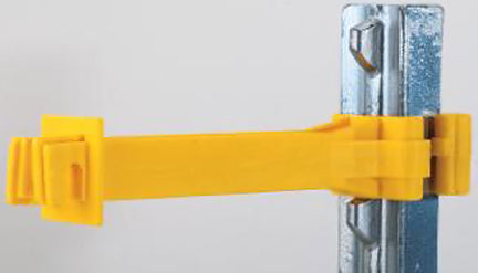 Snaps on and around post. Extends wire a full 5" from post. Made of one piece tough yellow weatherproof linear polyethylene. Excellent to install over old sagging field fence. Heavy rib design. 25 in a package.